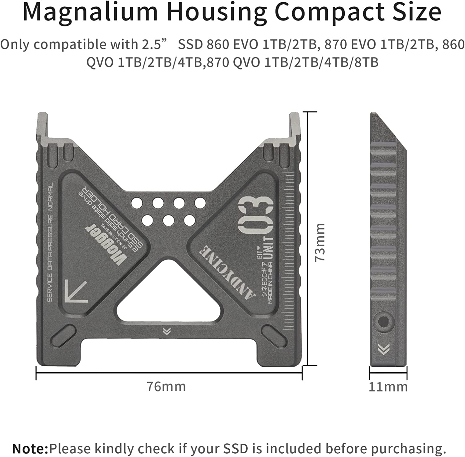 Only compatible with 2.5” SSD 860 EVO 1TB/2TB,870 EVO 1TB/2TB, 860 QVO 1TB/2TB/4TB,