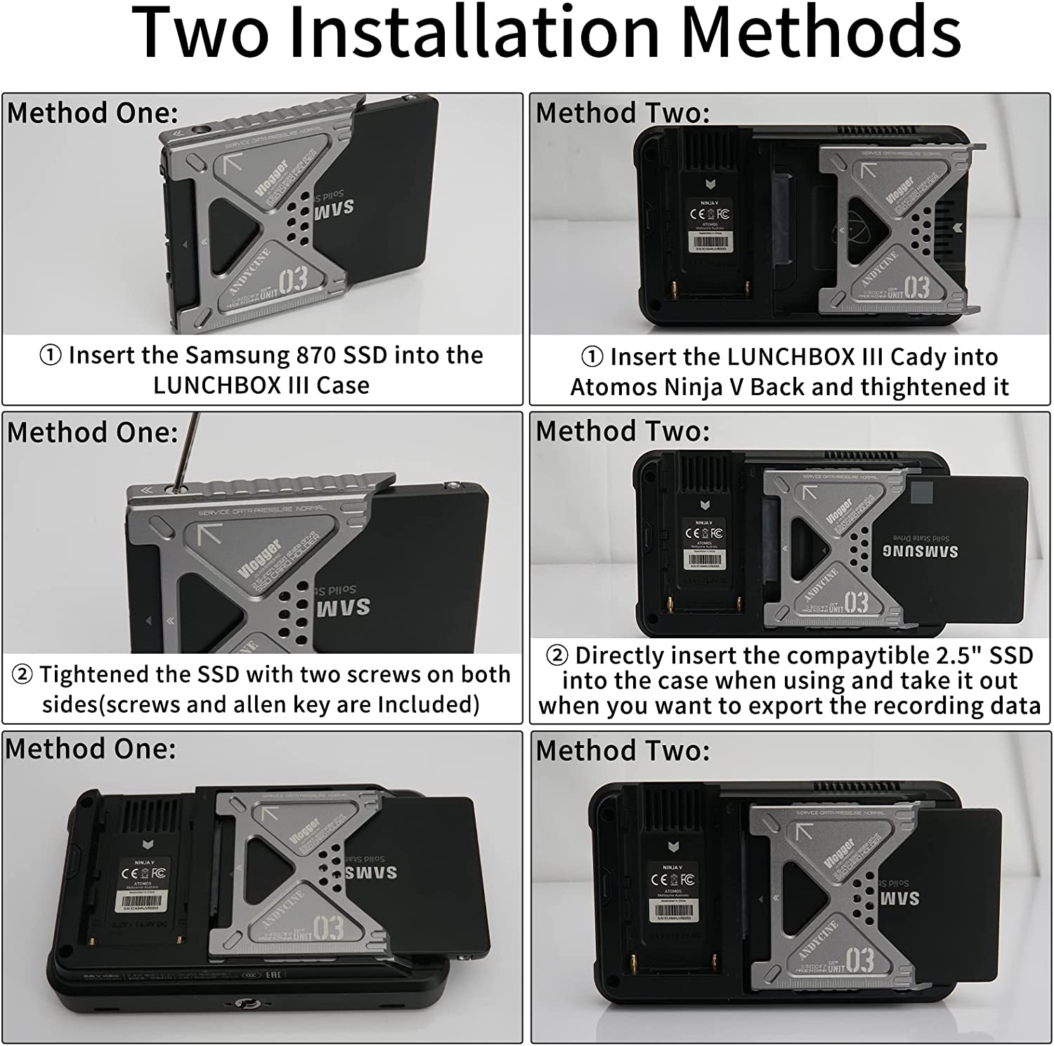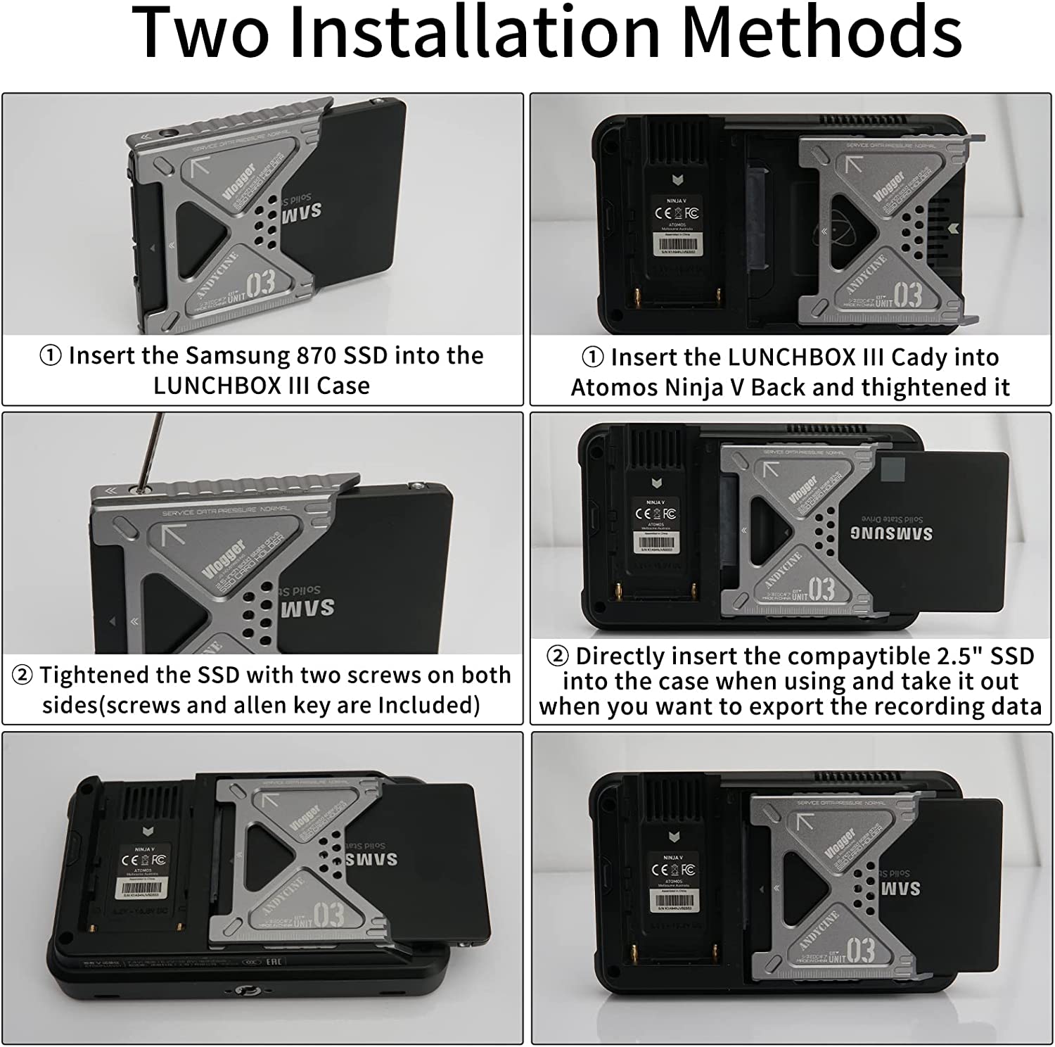 ANDYCINE LunchBox III Case for 860 EVO 870 QVO SATA SSD to Atomos NINJA V/V+