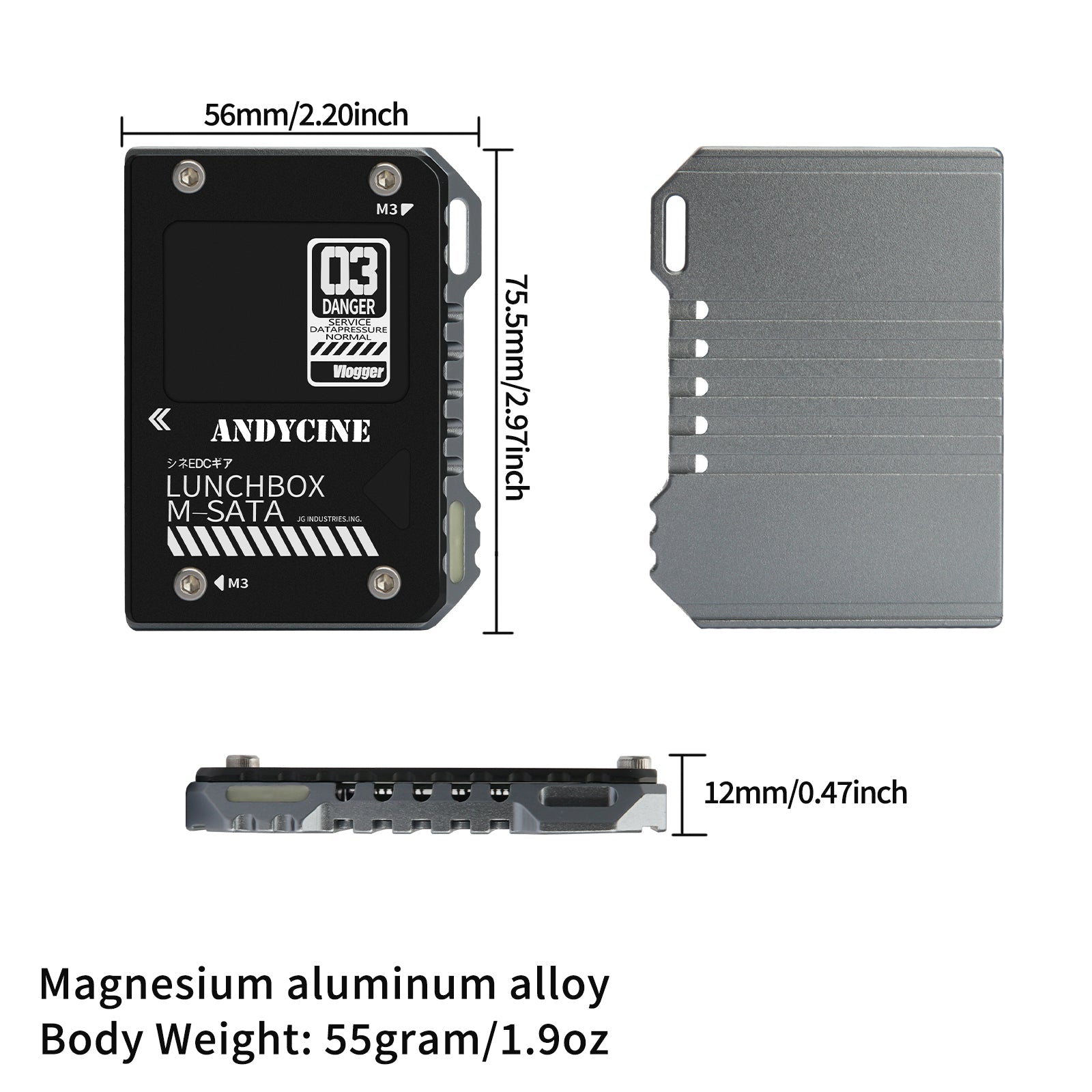 Andycine LunchBox Magnalium Case for T5 mSATA SSD Compatible with Atomos NINJA V with mSATA to SATA adapter