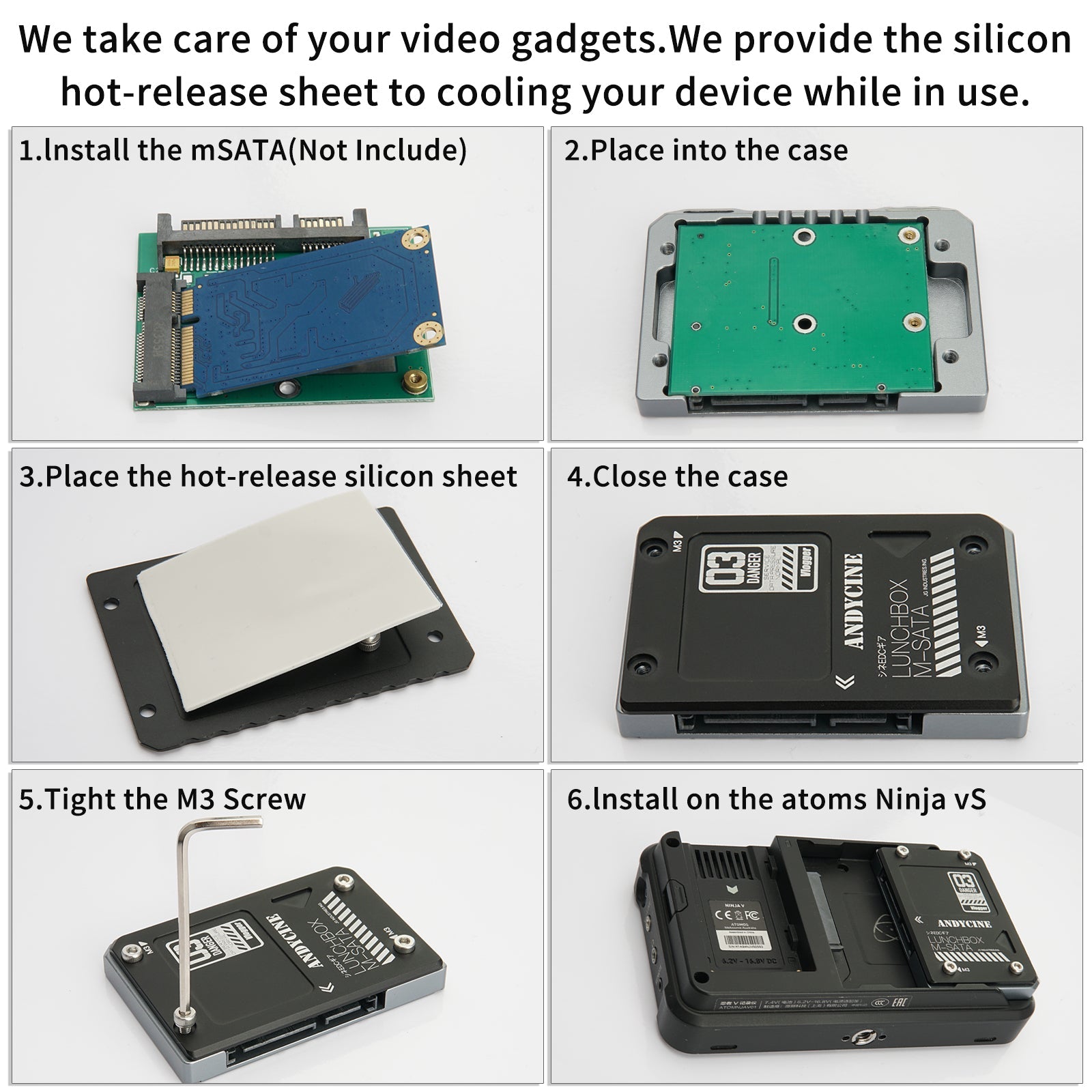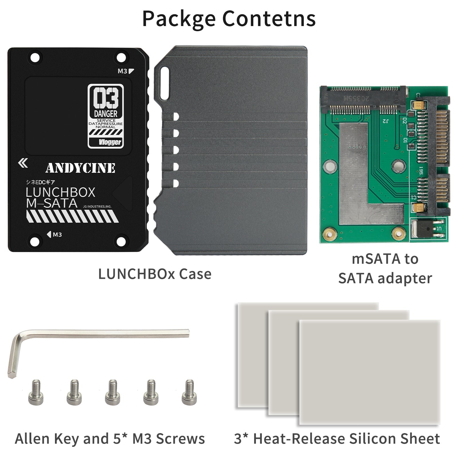 Andycine LunchBox Magnalium Case for mSATA SSD Compatible with Atomos NINJA V with mSATA to SATA adapter