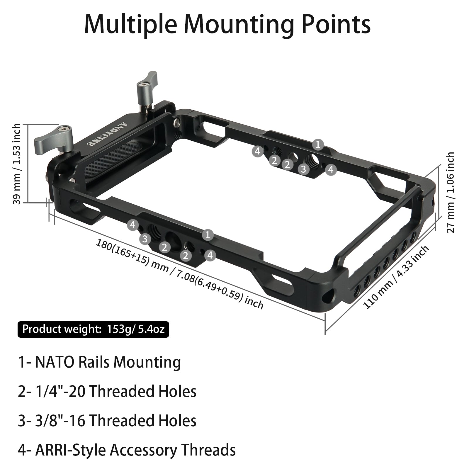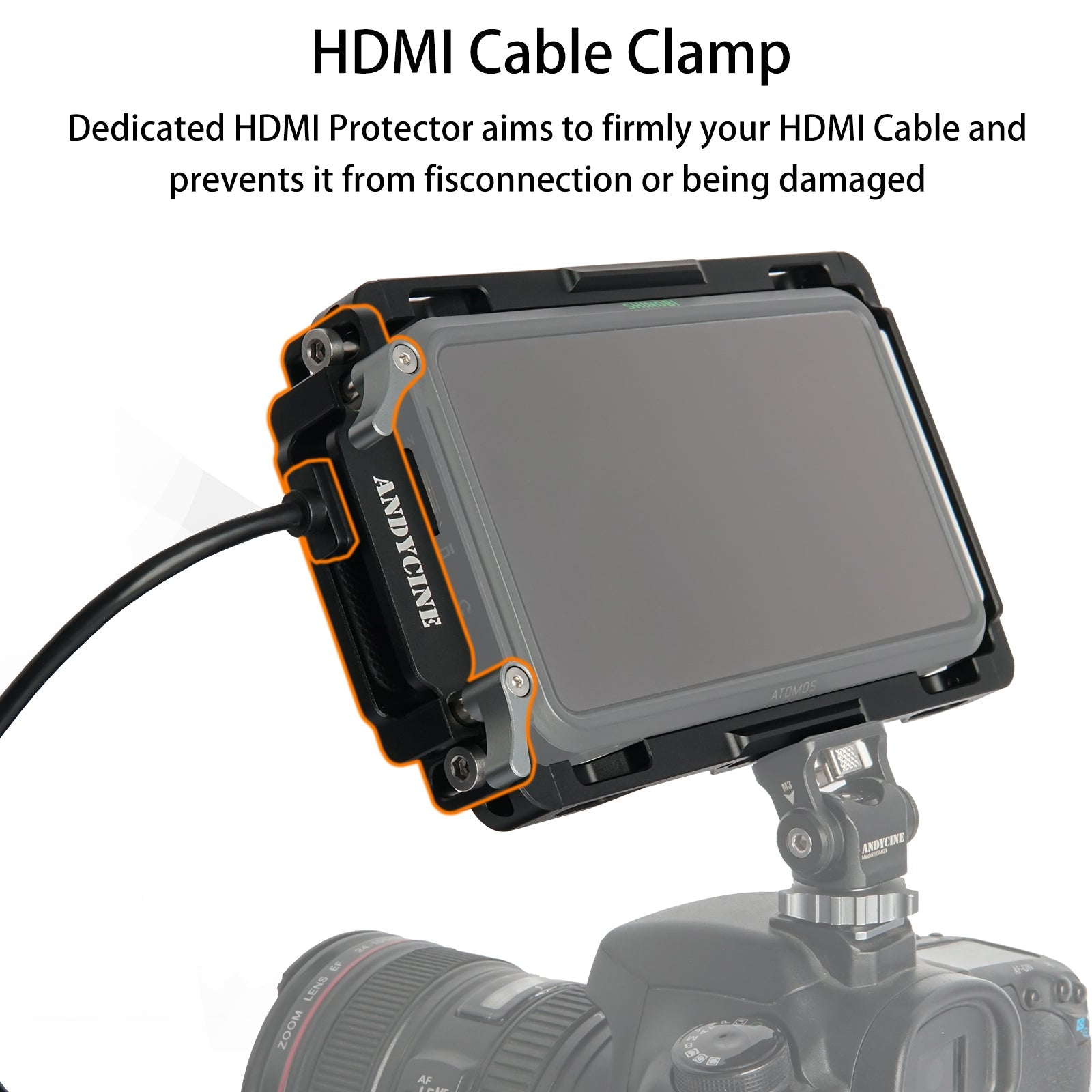 Andycine Monitor Cage with Built in NATO Rail and Extra HDMI Cable Clamp Sunhood for Atomos Monitor Ninja V and Shinobi