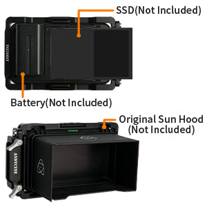 It features four raised attachment points on both the top and bottom of the cage, for attaching Atomos ninja v and Shinobi Sunhood frame