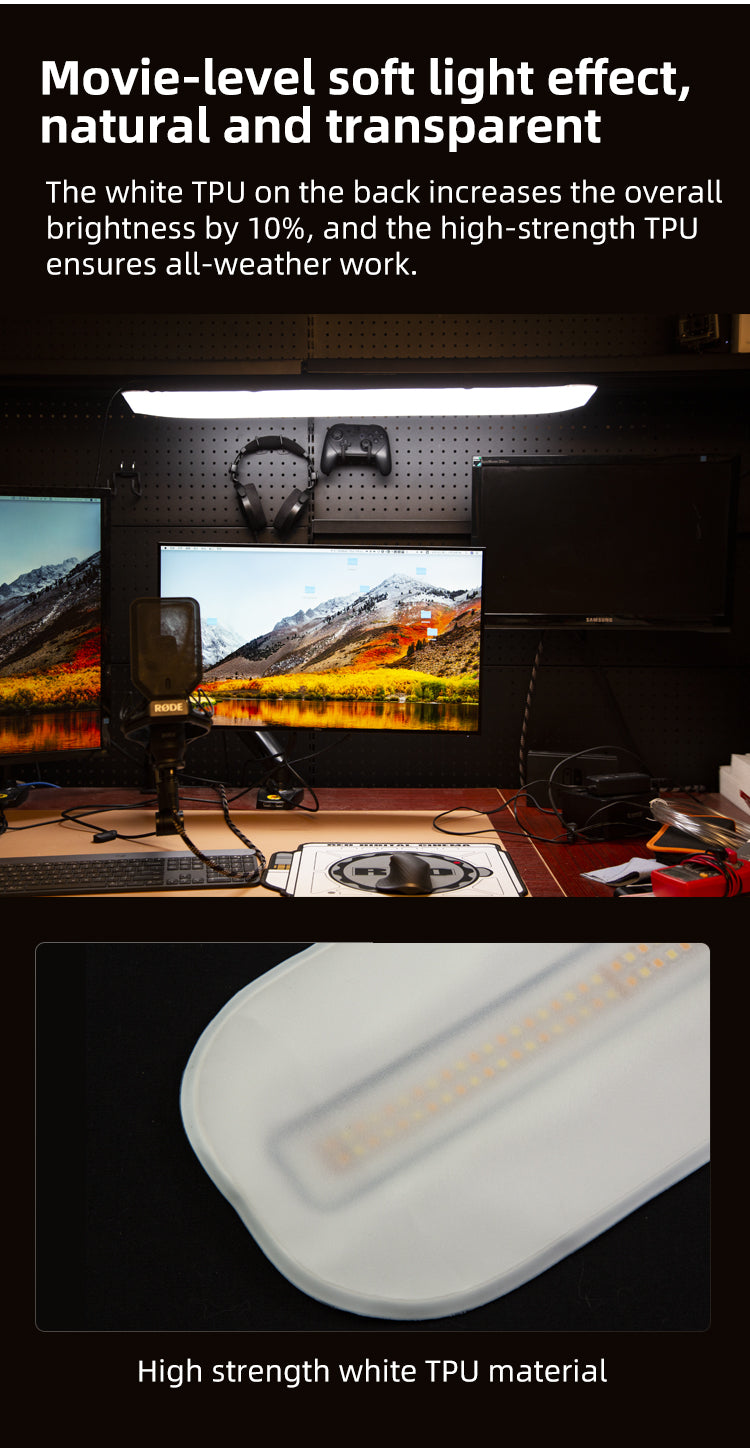 Small, compact, and space-saving, the 35.4" Bi-Color Inflatable LED Tube Light from INKEE is a 19.2W flexible lighting tube for content creators and vloggers shooting on-the-go. Constructed of 320 full-spectrum beads, the tube's flexible material morphs into different shapes for variety. With high CRI and TLCI ratings, accurately create customized lighting with multi-level brightness adjustment options, or replicate ambient light with 2700, 4000, 5600, and 6500K color temperatures. Secure the AC/DC-powered light to a magnetic surface with the three embedded N52 magnets or use it handheld. This lightweight tube adds soft, natural illuminations or can add additional fill to small, dark areas.