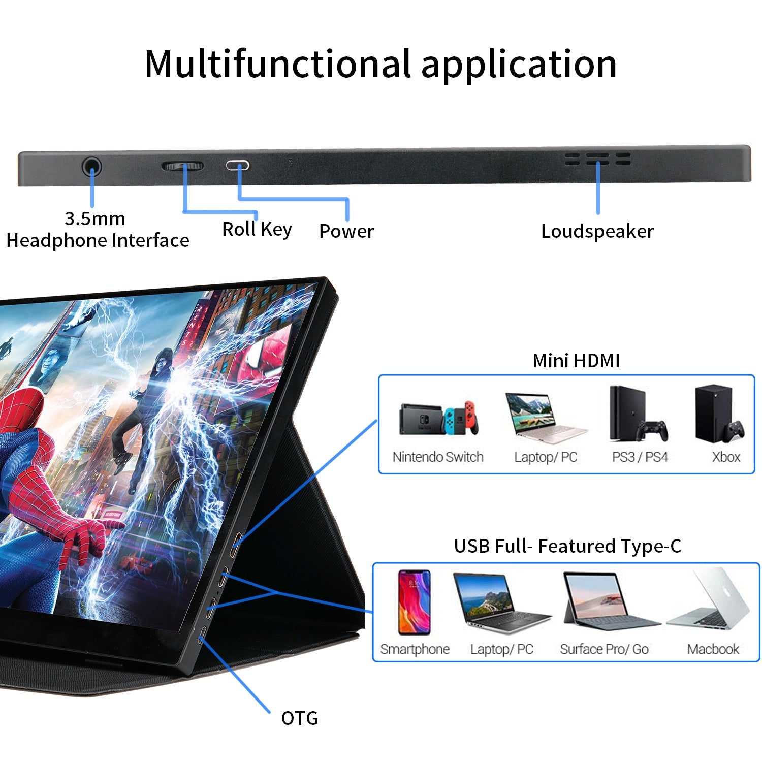 • with Mini HDMI & USB C ,makes this portable monitor more convenient to connect your gaming devices, also, an ideal external screen for playing games at home youself or with your friends